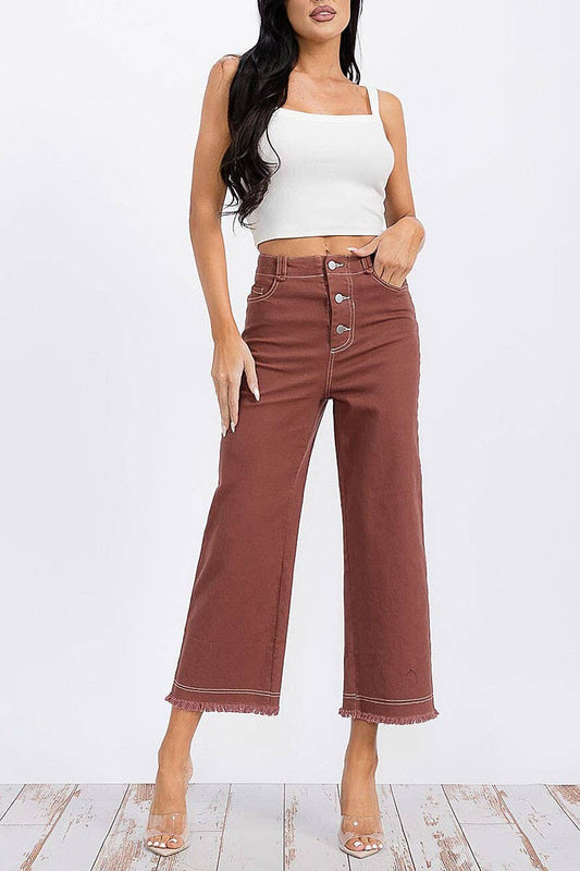 BUTTON CLOSURE POCKETS WIDE LEG DENIM PANTS - Rust